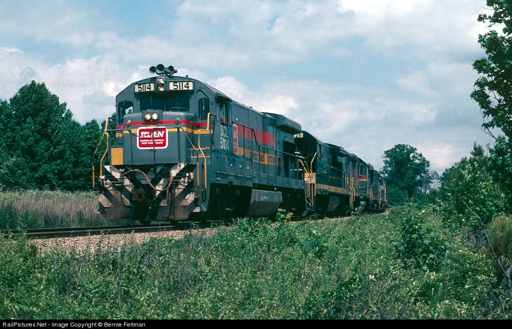 Train #215 was the daily run-thru on the Western Railway of Alabama from Hamlet, NC (SCL) to New Orleans, LA (L&N). Leading unit SCL 5114 was built February 1978 and later became CSX 3114.
