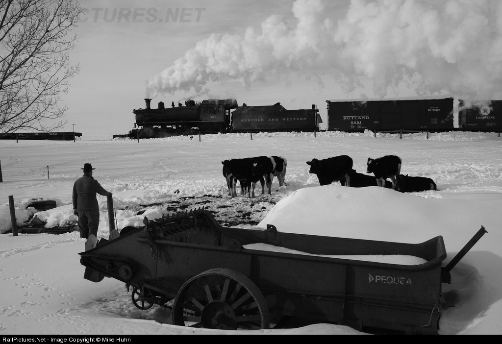 Minutes away from its final destination in West Jefferson, NC, N&W Train 201, the southbound Virginia Creeper, passes a local farmer keeping watch to his cows. The date may not be 1956, but the Strasburg Railroad and Lerro Productions does one heck of a job recreating the famed train, which included renumbering engine 475 to 382.