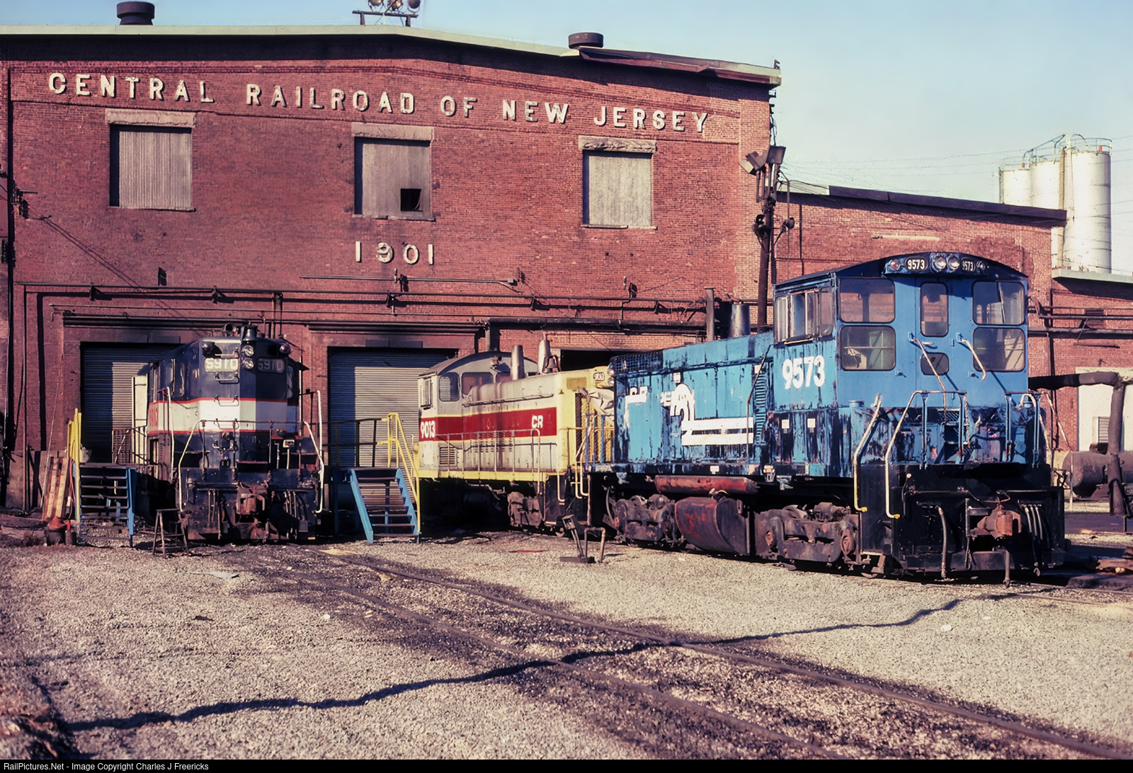 Conrail's former Jersey Central Elizabethport Shops hosted poorly painted SW1500 #9573, former Erie Lackawanna SW9 #9013, and New Jersey DOT GP7 #5910 on this visit. I don't know why the SW1500 was there (the other two units were regulars), but the Conrail paint on it looks like it was done in water color. It's coming off all over and the CR patch over Penn Central is coming through.
