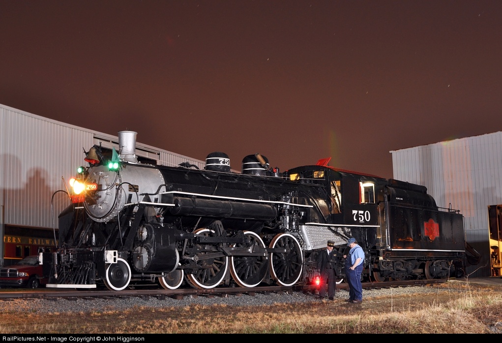 The regal 750 turns 100-years-old this year; she was constructed in 1910 by Alco for the FEC. Famous for powering Southern and New Georgia steam excursions, the 750 is now one of the premier exhibits at SERM. The engine was let out of its display shed for a trial night photo session at the museum.