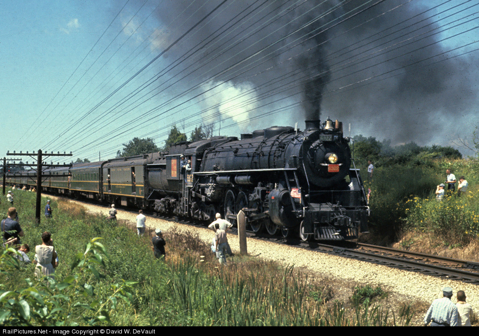 Grand Trunk Western U3b class 4-8-4 is shown on a photo run by in August 1960 on a fan trip out of Chicago. This engine is a sister to the 6325, which is part of the Ohio Central steam locomotive collection. The 6322 powered a second section of Detroit-Durrand passenger number 21 on March 23, 1960--the last use of steam power on a regularly scheduled passenger train in the US. Notice how photographers just scattered back then. Someone later came up with the novel idea of a "photo line," so everyone could get an "action" shot without other photographers standing in the scene. Alas, the 6322 was not saved from scrap. (Editorial note: Thanks to Ron Flanary for the caption assistance.)