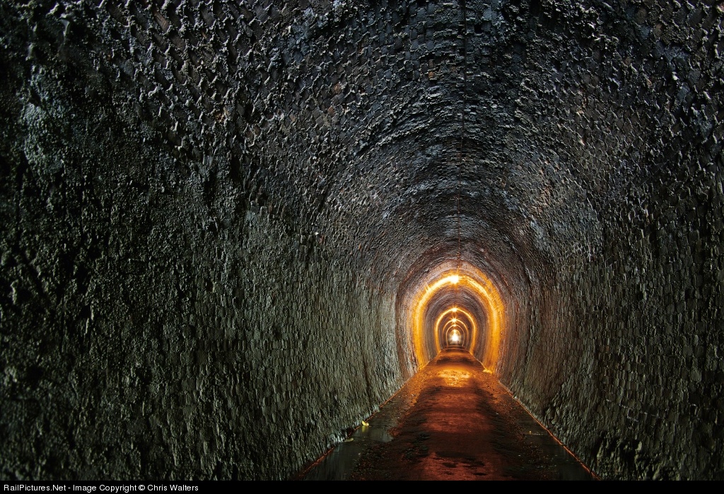 An interior view (looking east) within the now-bypassed tunnel in Karangahake Gorge, on New Zealand's North Island.