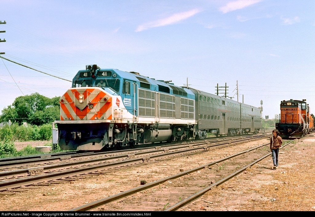 Milwaukee Road locomotive 41 on commuter train. Verne Brummel (photographer) / Dave Cramer (photo editing). Visit our websites at -
