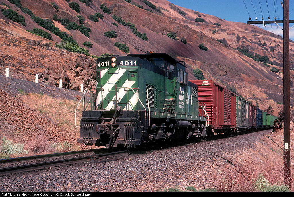 RailPictures.Net Photo: BN 4011 Burlington Northern Railroad Alco C415 at Lyle, Washington by Chuck Schwesinger