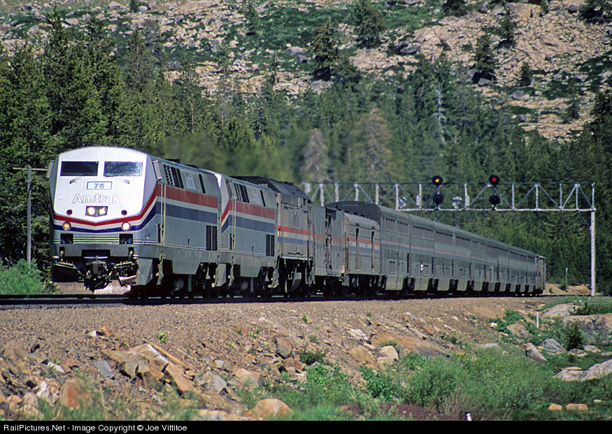 RailPictures.Net Photo: AMTK 76 Amtrak GE P42DC at Soda Springs, California by Joe Vittitoe