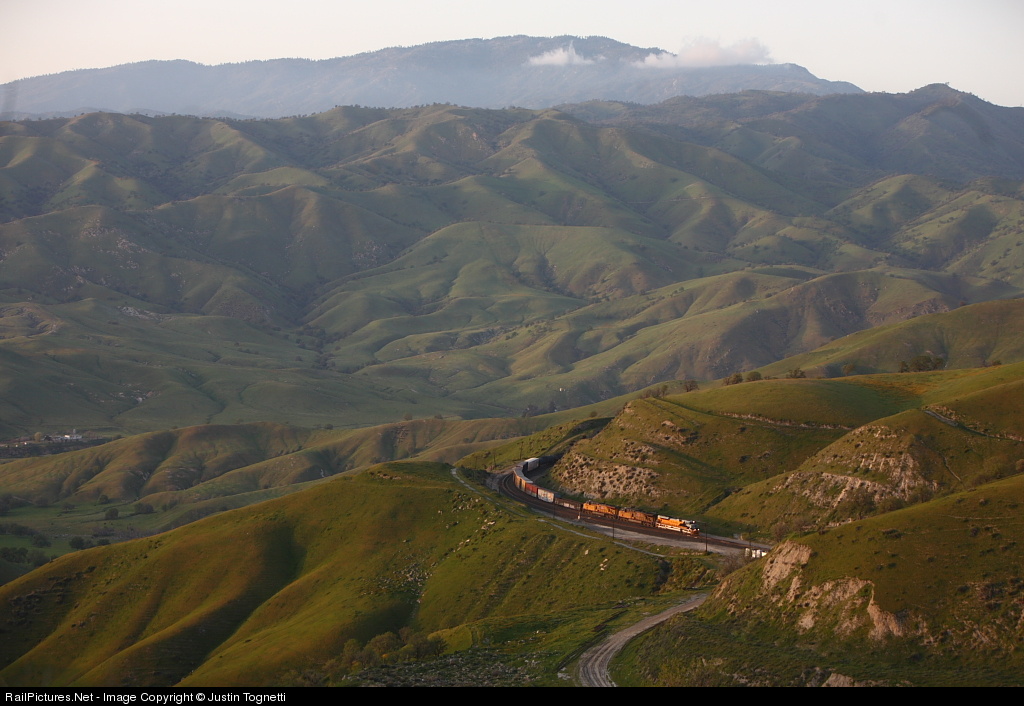 With the low evening sun dropping into the San Joaquin Valley haze, the Rio Grande heritage SD70ACe rolls downhill through Cliff with a westbound manifest. Following this train over the pass on the way back to the Bay Area was an awesome way to cap off a week of photography on the LA&SL.
