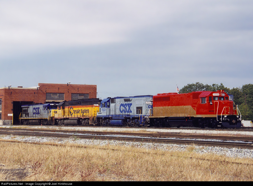 Indiana Southern, pre-lettering, stops over in CSX's Barr Yard with some locos in early CSX (and late Chessie) lettering.