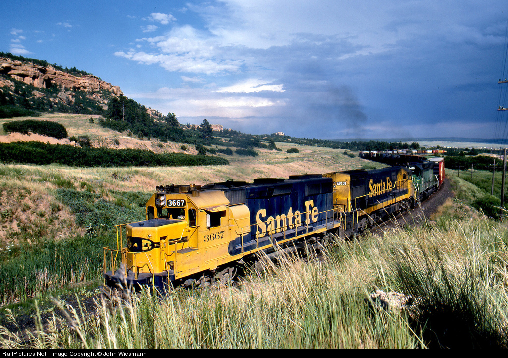 RailPictures.Net Photo: ATSF 3667 Atchison, Topeka & Santa Fe (ATSF) EMD GP39-2 at Palmer Lake, Colorado by John Wiesmann