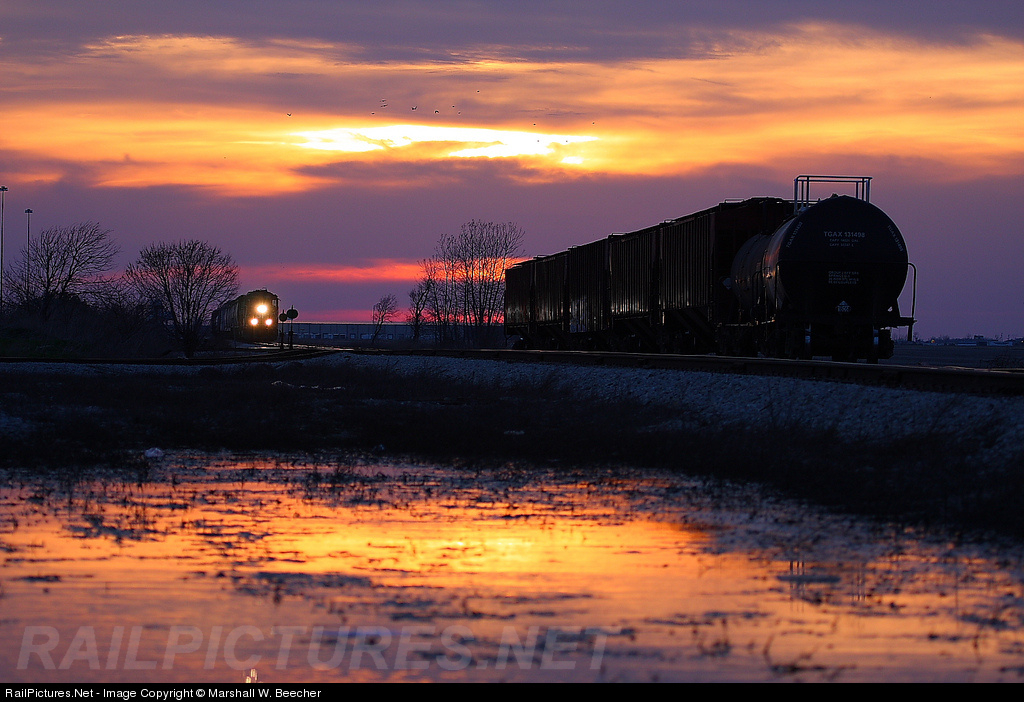 With a CEFX leaser up front, the TP&W comes back to Remington at sunset.