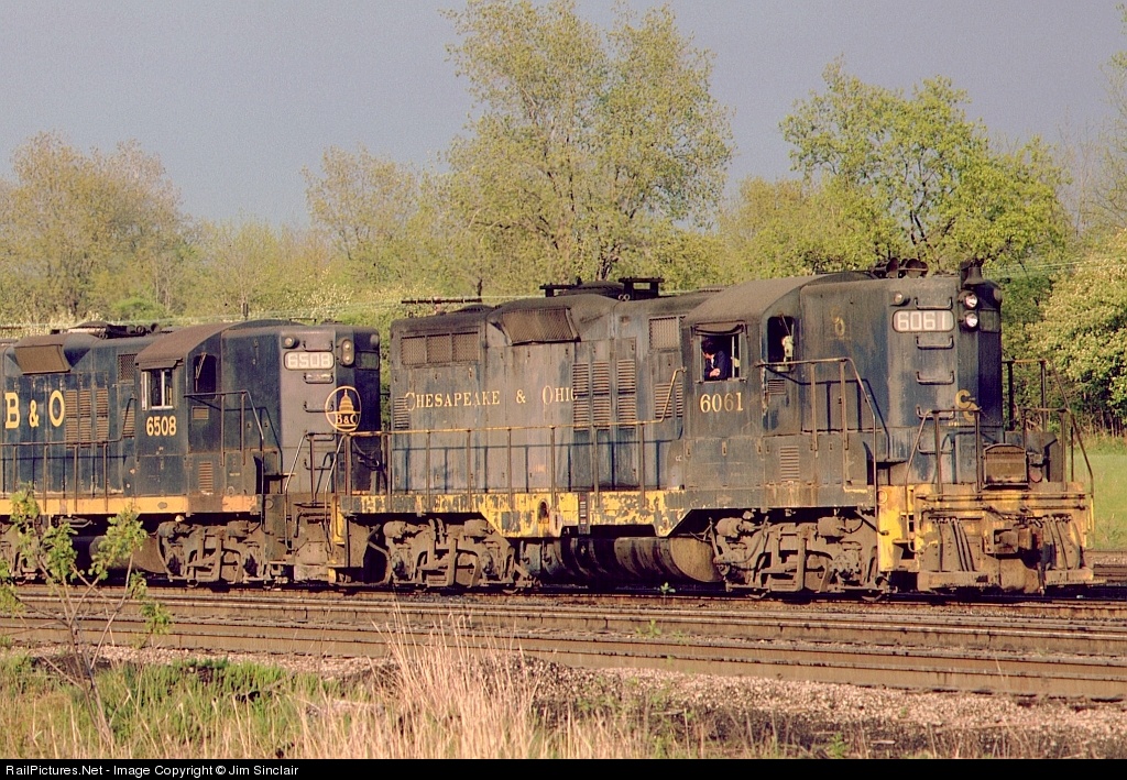 C&O GP9 6061 and B&O GP9 6508 switch the south end of Rossford Yard shortly after the passing of an early evening spring storm. On March 3, 1977, and less than a year after I shot this image, B&O 6508 would be involved in a wreck in Penn Mary, MD and traded into EMD on October 31, 1978.