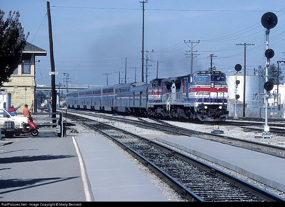 Running daily between Seattle and Los Angeles, this train offers running alongside the Pacific Ocean and through the Cascade Mountains. It has been one of Amtrak's long-distance success stories.