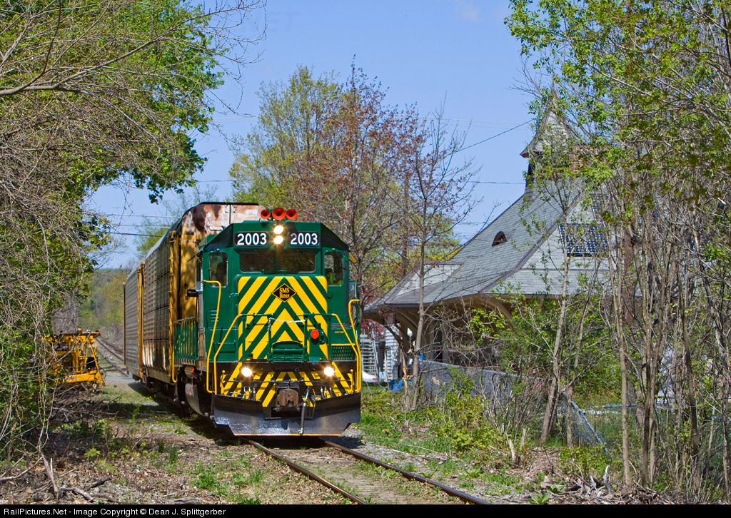 | Busy Little Town……Due to its Geographic location the Village of Altamont is a busy little place. People who live in the Hilltowns and who drive each day to Albany, Schenectady or other Towns and Cities in the Capital District depend on the Businesses in this little town. The Crossing at Main Street sees both a lot of Vehicular and pedestrian traffic. Also people who live in the village cross over the Albany Main in between neighbor’s yards and even use the ROW as an easy access into the heart of the Village. SMS’s Crews who pass through here daily have to be very vigilant as can been seen in this Image as A-Team member Jeremy can been seen looking out his window checking for people or obstructions so he can alert his fellow A-Team Member Bill who can be seen looking ahead. Also to be noted is the yellow MOW machine on the left side siting on the siding up by the station. SMS’s MOW Division has been busy since late March working on the Albany Main and at the park. Two weeks ago they began replacing ties from the entrance of the park and are slowly working there way up to Delanson replacing ties that are no longer any good. |