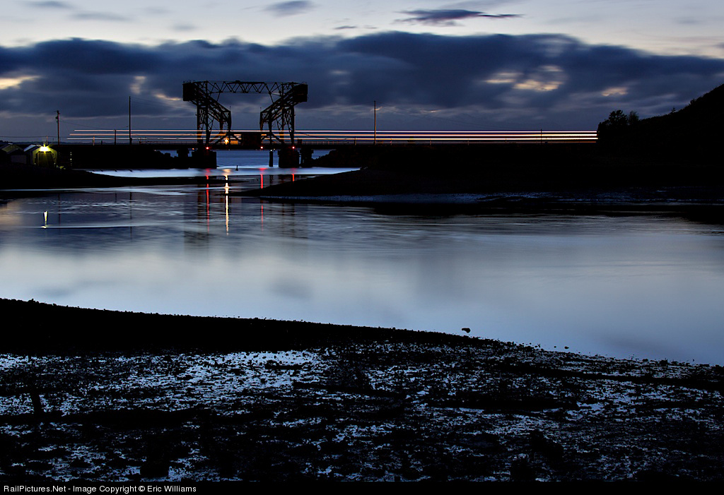 As a storm moves out and the tide moves in, an intermodel train darts across the Chamber's Creek bridge.