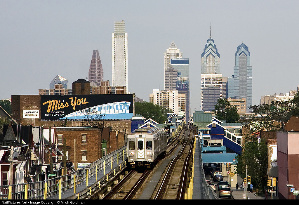 | The Philadelphia Elevated line. The shortest route between Center City and 28 neighborhood stops. Note the "love letter" mural to the left; it's one of 50 murals to be painted as a public arts project on the Market Street corridor facing the El. |