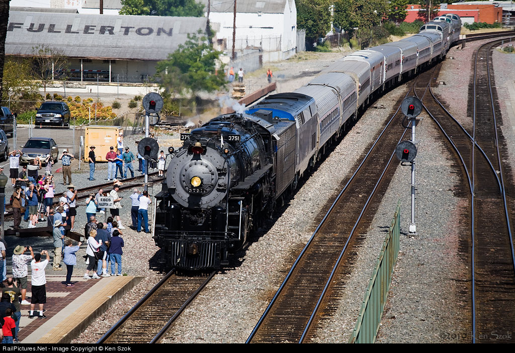 RailPictures.Net Photo: ATSF 3751 Atchison, Topeka & Santa Fe (ATSF) Steam 4-8-4 at Fullerton, California by Ken Szok