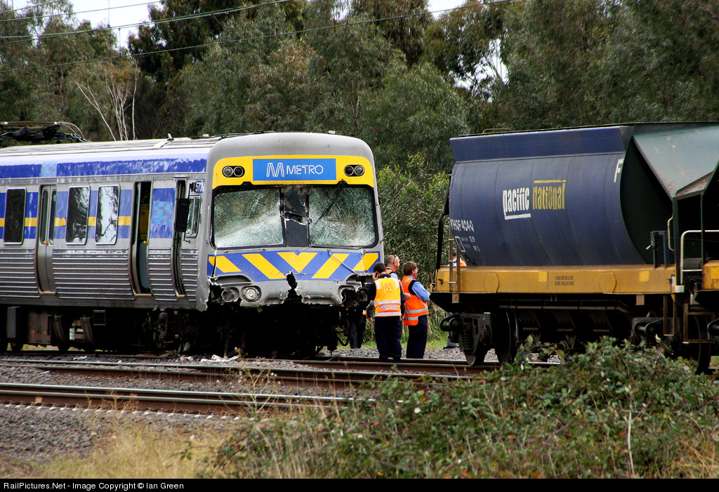 The aftermath of a rear on collision involving a Metro Comeng set and Pacific National freight train near Craigieburn.