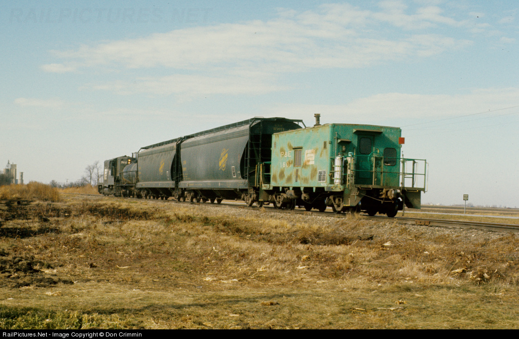 Peoria and Eastern cabin car 1601 punctuates the rear of a three car local westbound near Farmers City, IL.