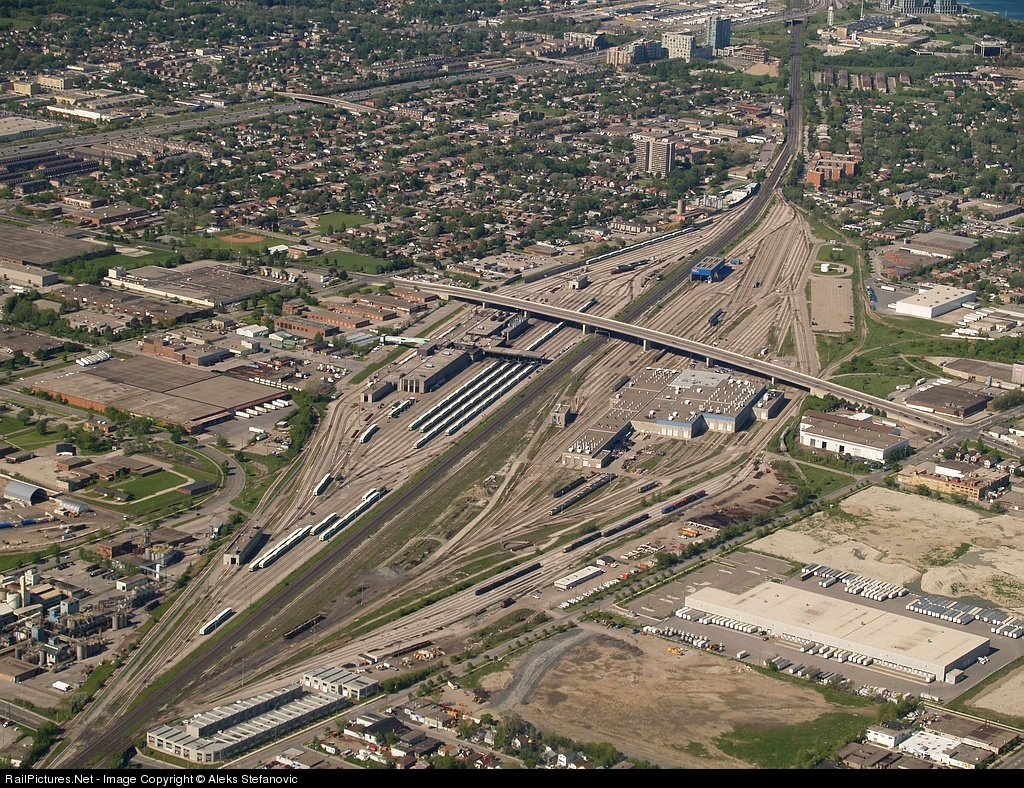 After circling out over Lake Ontario to set-up for final approach to Pearson International airport we past just west of the GO yard at Mimico. The yard is located west of downtown Toronto on the North side of the Oakville Sub. Directly opposite is the VIA shops and engine facilities on the south side of the main. The yard see's very little activity now as the work formerly done here was moved to the Montreal Quebec area.