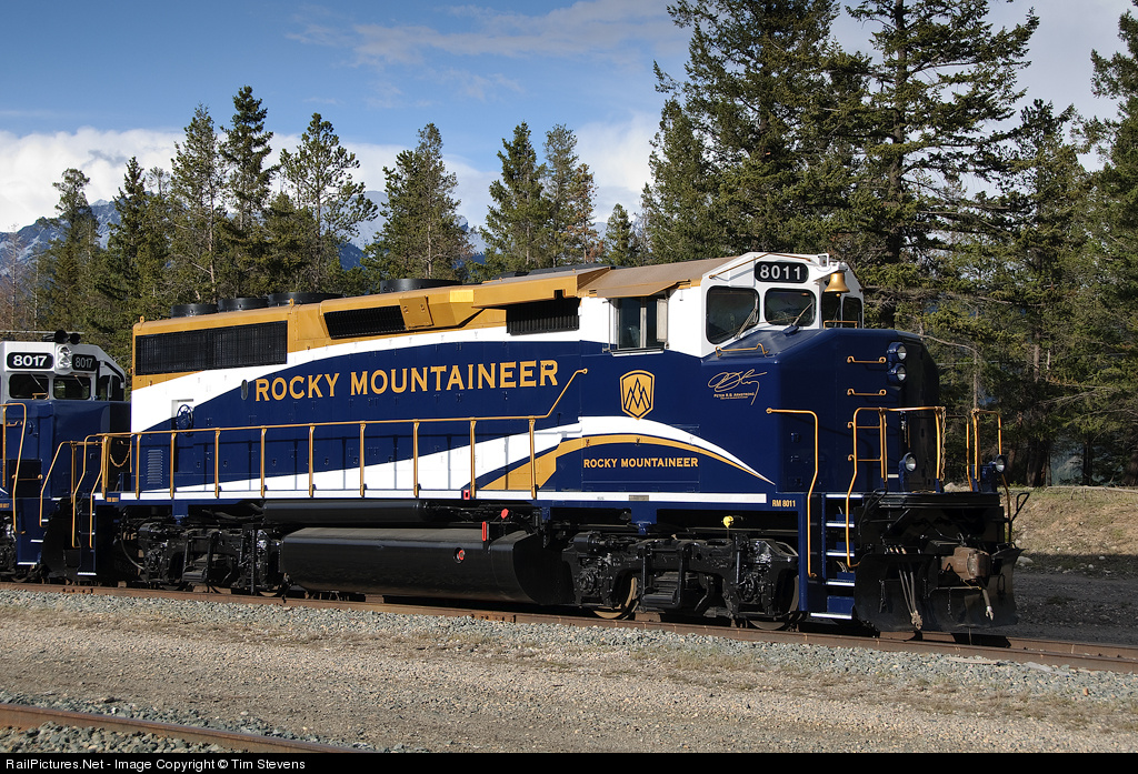 RailPictures.Net Photo: RMRX 8011 Rocky Mountaineer Railtours EMD GP40-2LW at Jasper, Alberta, Canada by Tim Stevens