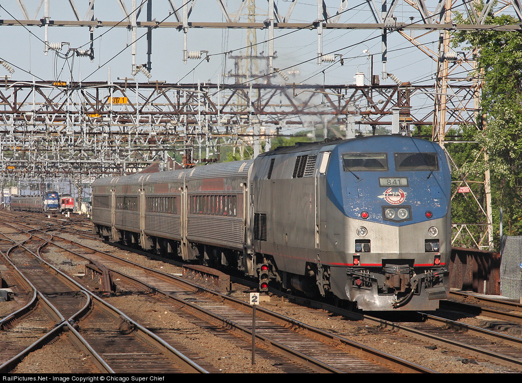 An ex-Amtrak P40DC, desperately in need of a (hopefully New Haven) new paint job pushes away from Stamford. In the distance, Metro North trains that will carry folks in to NYC prepare to leave the Stamford staging yard, and a Metro North geep awaits.