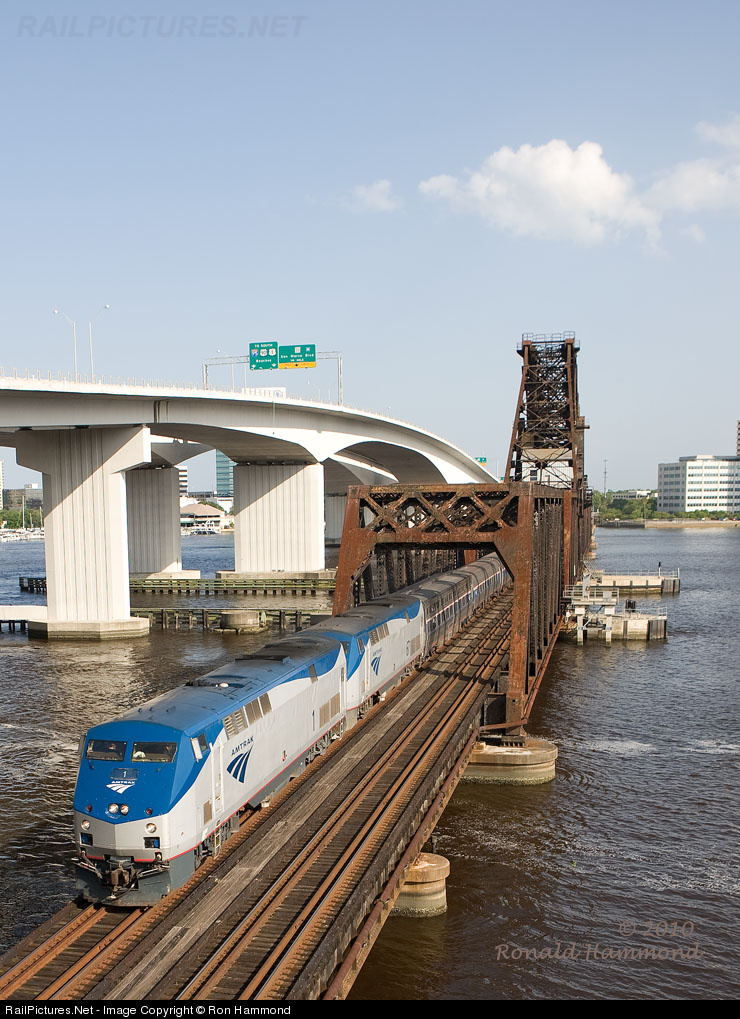 | This historic event is coming to a close where the Amtrak P240, across the Jacksonville bridge on its way back to the Amtrak station in Jacksonville, FL. Lets hope that this trip will make it possible for the return of passenger service to the FEC. |
