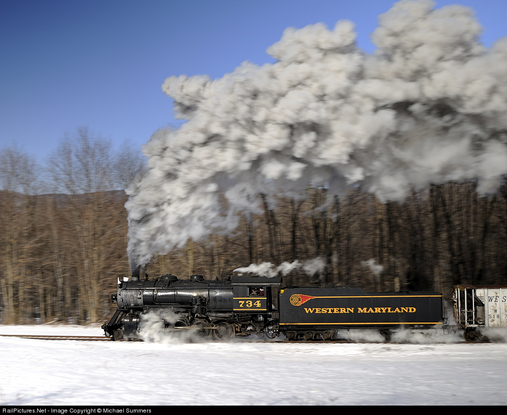RailPictures.Net Photo: WMSR 734 Western Maryland Scenic Railroad Steam 2-8-0 at Frostburg, Maryland by Michael Summers