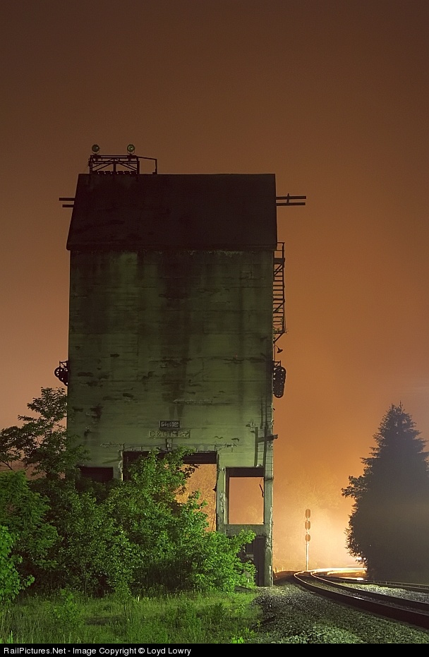 An Eastbound approaches the Fairbanks-Morse coaling tower in Thurmond. The heavy fog gives life to the locomotives headlights. A 36 second exposure @ f5.6, ISO 400.