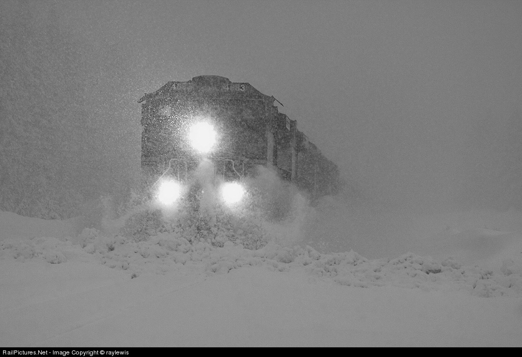 Just before sunrise, we had to make the little light we had work. It was a wet snow, so we decided not to trek too far away from the car. But here the westbound MSTDVJ heads through the crossing with snow piled up from the road snoplows. I decided not to post the typical blasting through the crossing shot, and get the one just prior. I love the way that the snow is twirling around.