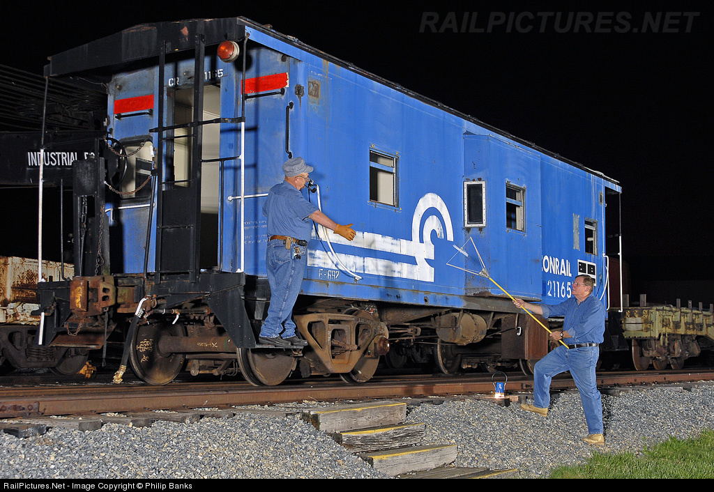 Conrail Historical Society's N7e caboose posses at the end of a train as seen here the crew is taking up orders while routing around the work crane. A very nice set up and posing by the staff of Conrail Historical Society and the Railroad Museum of Pennsylvania. What a nice night for the photo shoot. Lighting provided by Brian Alisen and Philip Banks. Thanks all for an awesome night!