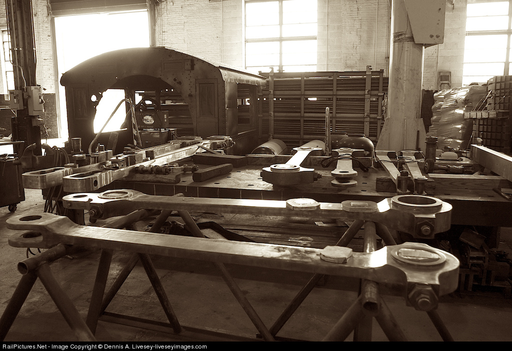 Baldwin Locomotive Works No. 26 parts under reconstruction at Steamtown's Scranton shop. Here you see eight rods, polished and ready for mounting. Hopefully soon that cab will feel the heat of a boiler and the weight of a crew.