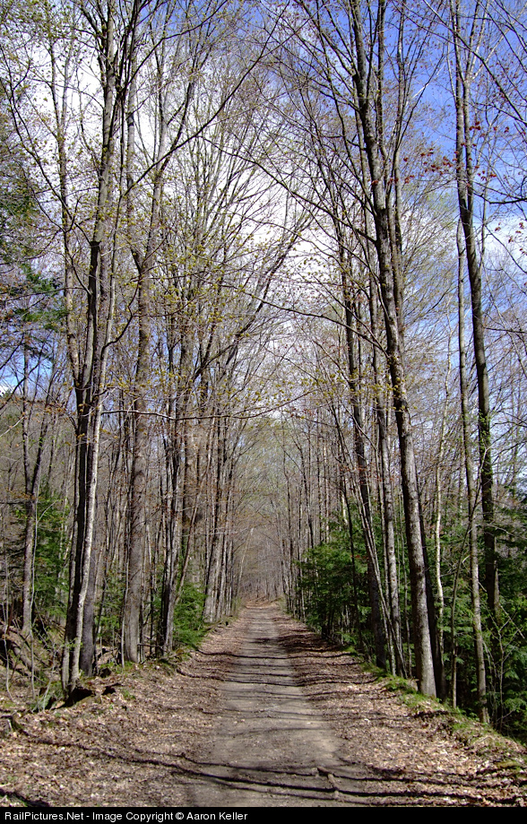 The Dolgeville & Salisbury Railroad stopped running trains in 1946, but its right-of-way is a great place for an enjoyable walk or a bike ride in the Spring, Summer, and Fall months. The Dolgeville & Salisbury was constructed under the direction of the Salisbury Steel and Iron Company, which mined several small ore deposits in the area to the north of where this photo was taken. The first train ran the line on April 16, 1908. Steam locomotives hauled ore cars down this parcel of land until the mine closed in 1913. The untimely illness (pneumonia) and death of the mine's manager, Capt. William H. Switzer precipitated the collapse. The mine machinery almost immediately was silenced. The mine workings were sold at mortgage auction in 1916, and the workings were removed via rail in the summer of 1921. Gone were the days of steam locomotives hauling ore cars down this line. Even though the mine failed, the lumbering interests kept this line alive. The Jerseyfield Lumber Company ran two-truck shays deep into central Herkimer County starting at a location about a mile north of here. The Dolgeville & Salisbury connected with the Little Falls & Dolgeville to the south and was operated as a part of the LF&D system by LF&D management. Both roads became part of the New York Central. Today, a few ties remain in the gauge, and a few discarded spikes line this well-built path through the woods, reminding the occasional traveler or winter snowmobile enthusiast that this used to be a very storied part of "railroad country."