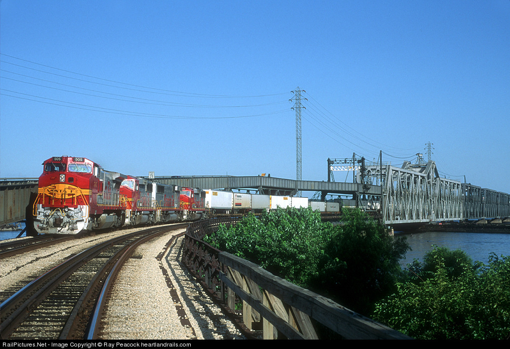 RailPictures.Net Photo: ATSF 505 Atchison, Topeka & Santa Fe (ATSF) GE B40-8W (Dash 8-40BW) at Fort Madison, Iowa by Ray Peacock heartlandrails.com
