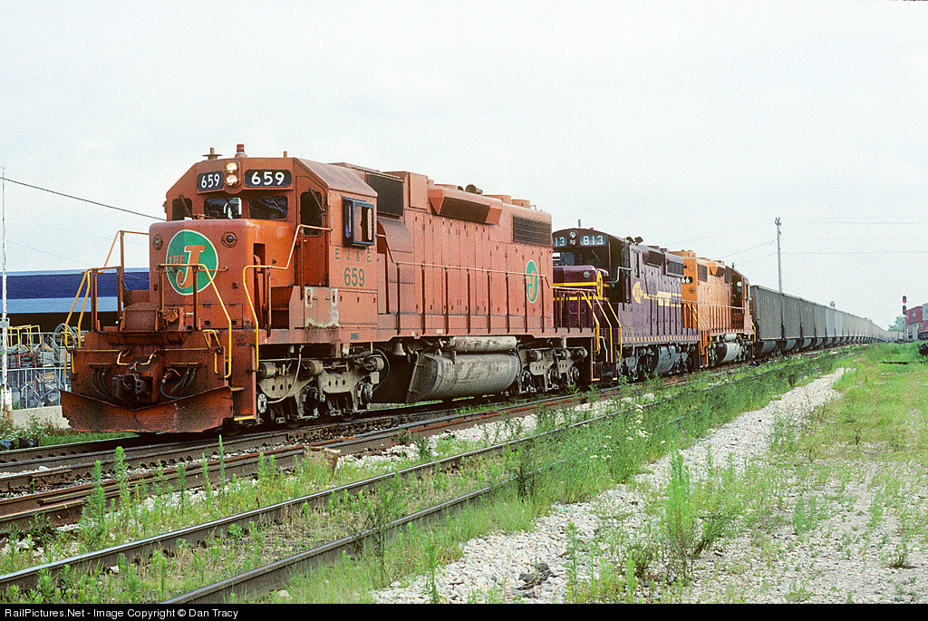 Northern Indiana Public Service did a test burn of Colorado Coal. Three trainloads were routed from the Converse Mine to Joliet via the SP where their power was cut off and the J power backed onto the train here at Jackson St. in Joliet to forward it to Indiana. Just one of those rare moves of the day.