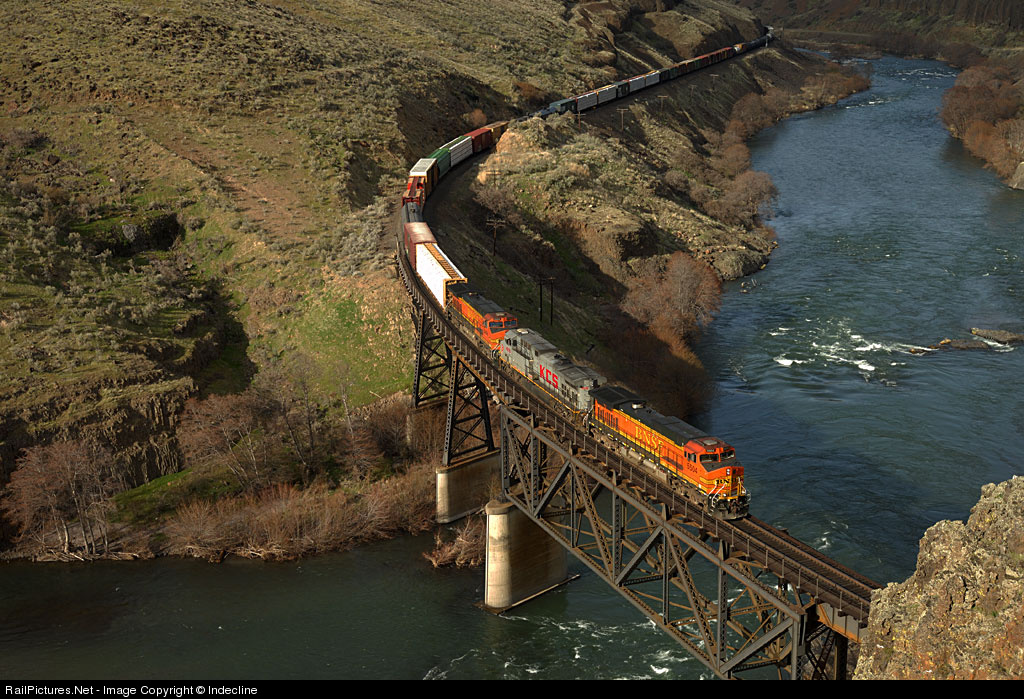 RailPictures.Net Photo: BNSF Railway GE C44-9W (Dash 9-44CW) at Sherar's Bridge, Oregon by Indecline