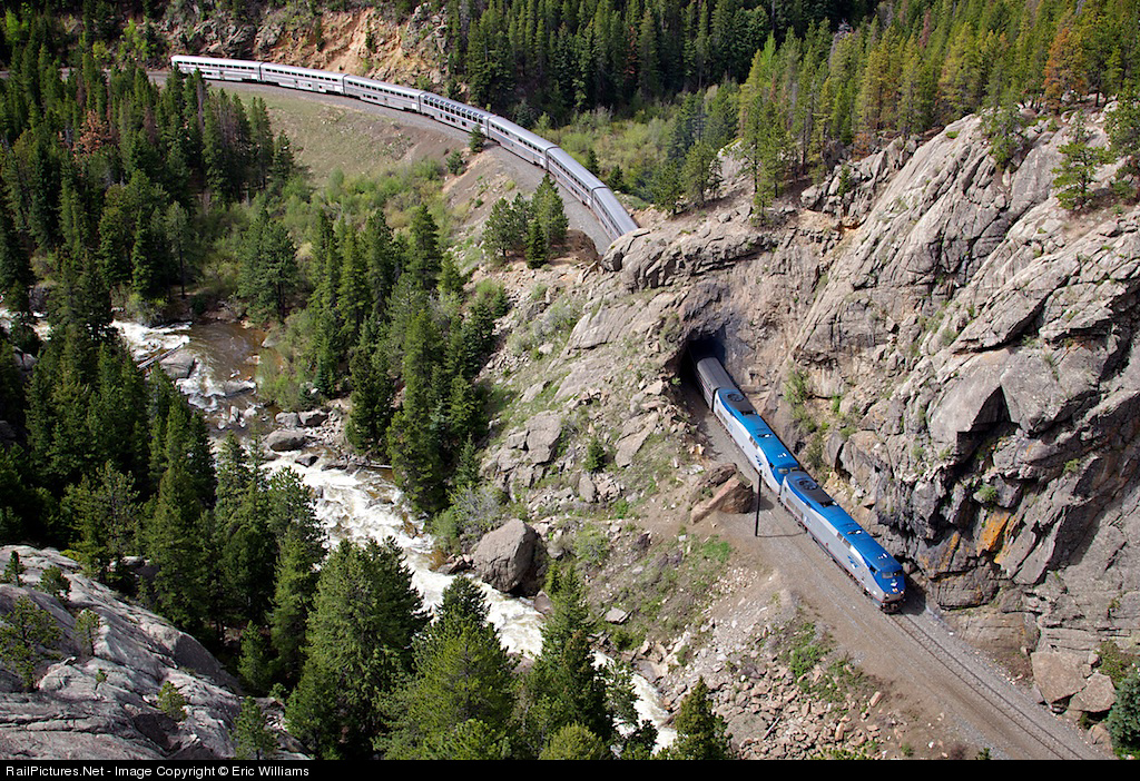 The California Zephyr climbs the Rookies on its westward trek. I lost my breath twice on this shot, first the hike up, and then the view from the rocks! For a just off the plane, flat-lander from New Jersey, the high altitude air mixed with a steep climb turned me into a panting dog, begging for more!