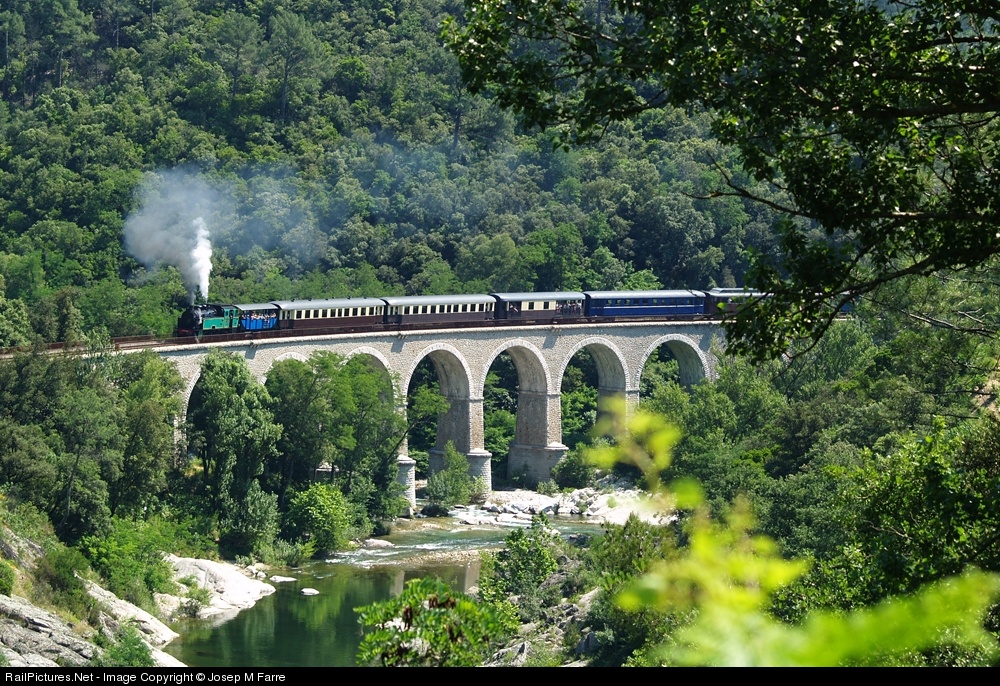 | The "Train à vapeur des Cevennes" runs touristic trains between Anduze and St. Jean du Gard. In this picture, an old 030T from 1953 is crossing a viaduct a few kilometers before its terminus. |