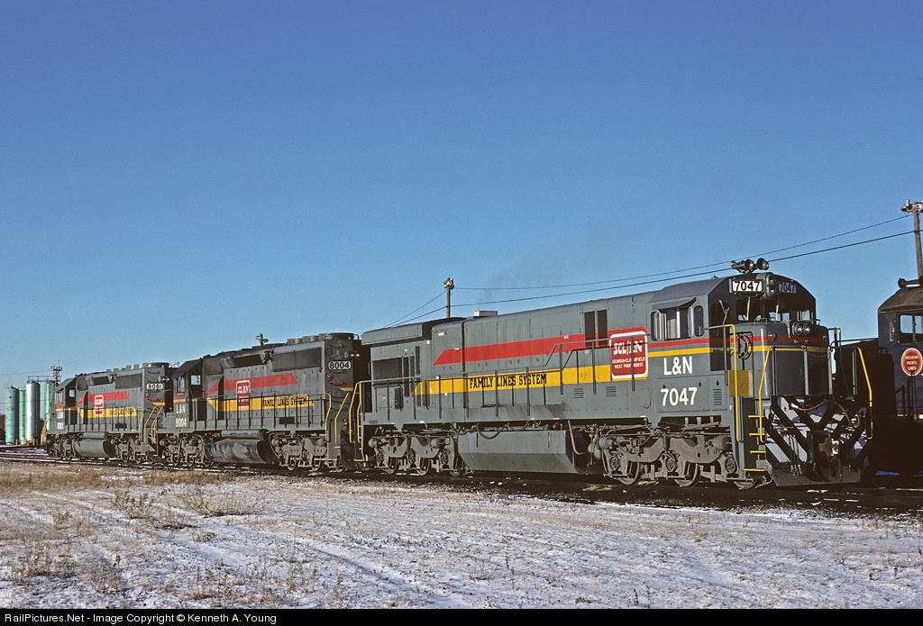 | This power consist represents some of newest models working for the L&N back in the late 1970's. 7047, 8004, and 8081 were near Chicago on 12-2-79. |