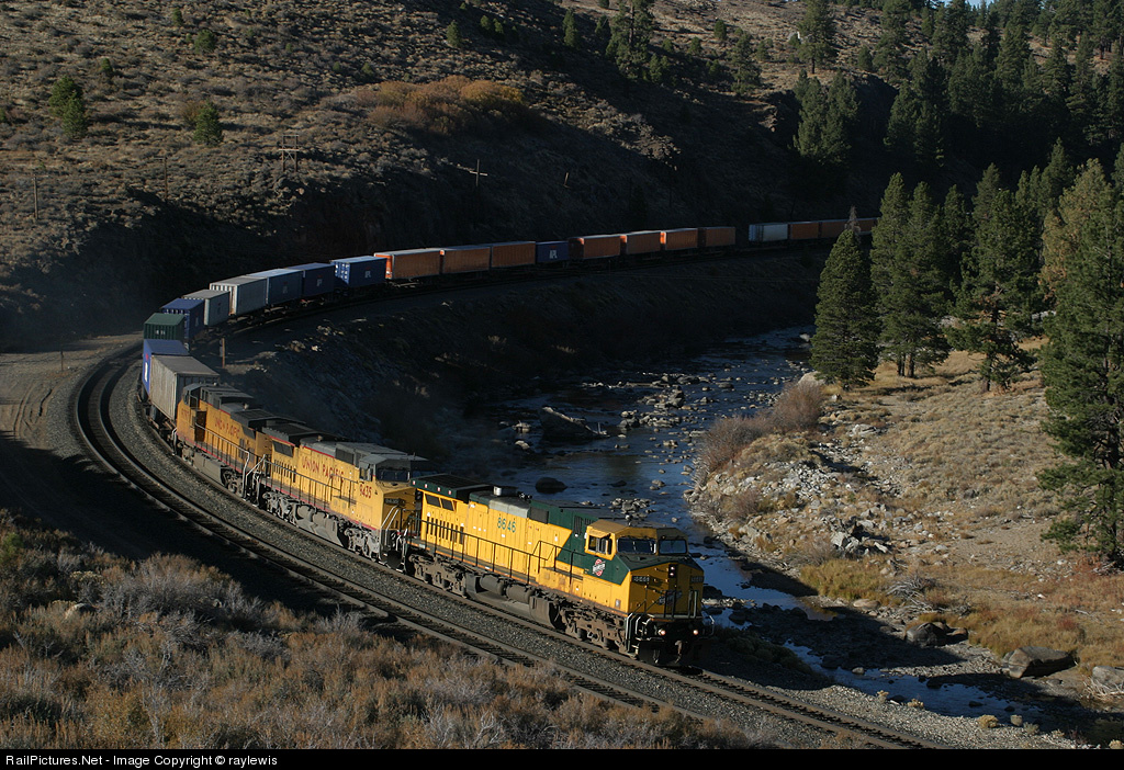 | One of the last real heritage shots I caught was of this CNW unit leading the ZLTCS over Donner. I chased it all the way to Roseville, and I am glad that I did. Too bad everything has patches now. |