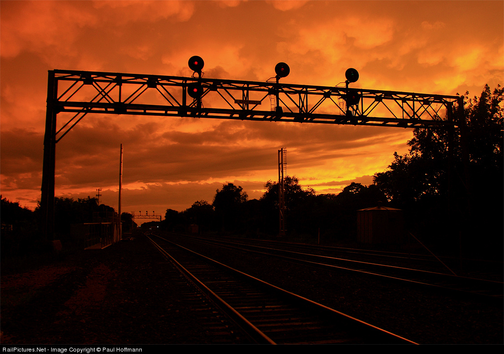 The sky after a severe thunderstorm creates an eerie orange cast over the soon to be reaplced CBQ signals.