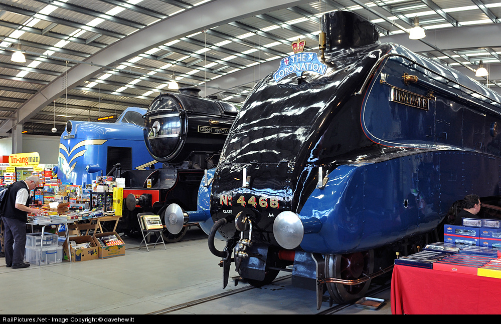 The National Railway museum at York has a subsidiary in the County Durham village of Shildon where years ago an important wagon works was situated. Last month a guest engine was transferred from York and was none other than the fastest steam locomotive ever, the world famous Mallard. A toy swapmeet is held at the museum every first weekend in July and Mallard can be seen last on the right in amongst the toy train traders stalls. Also in view working from the right are 60800 Green Arrow, a 2-6-2 locomotive and the first ever successful British mainline diesel, Deltic .