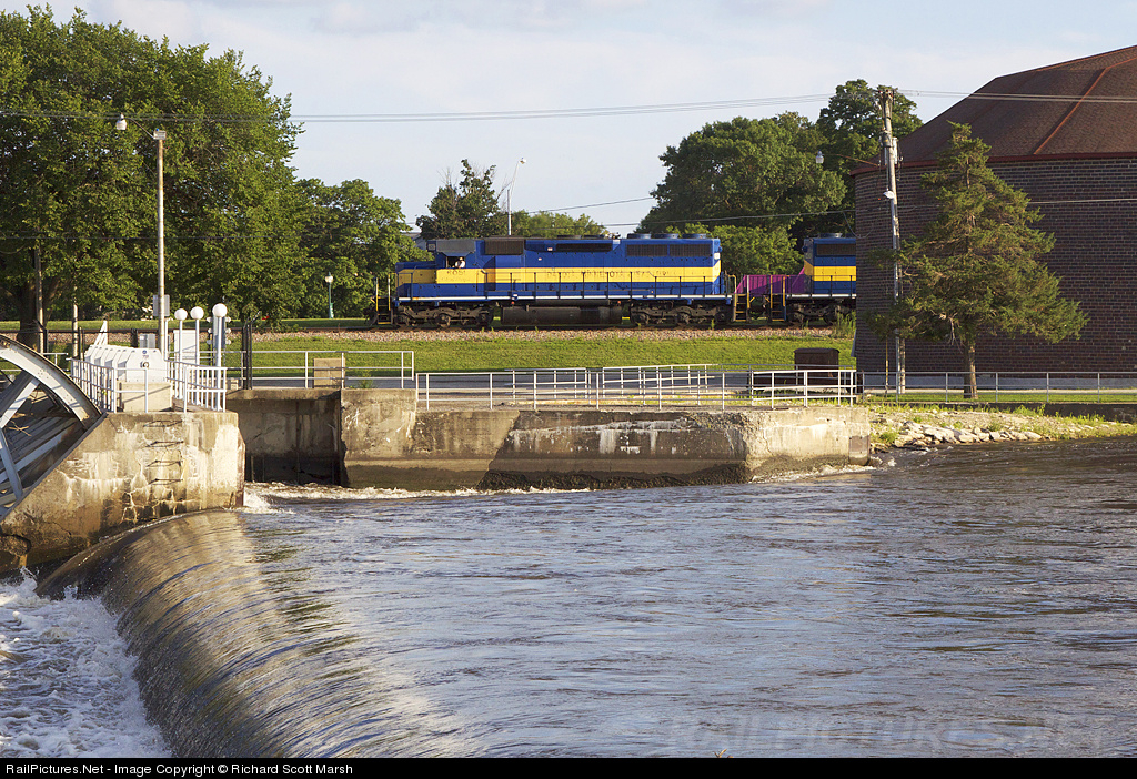 Iowa Northern North job has 4 DME SD's for a Ethanal train they will go back north with. Here there passing the dam on the Cedar River.