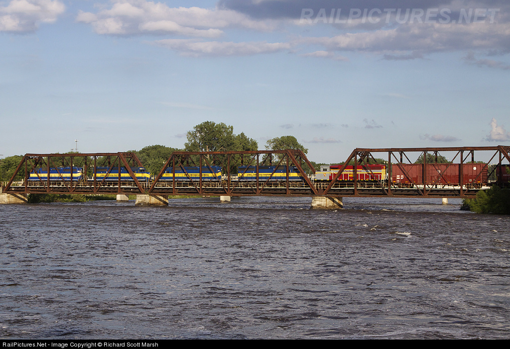 Iowa Northern North job has 4 DME SD's for a Ethanal train they will go back north with. Here there crossing the Cedar River on the CN.