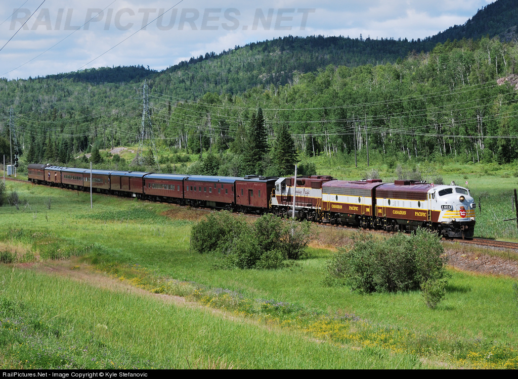| The beautiful CP heritage train full of local CP employee’s flies along CP's Nipigion Sub as it makes its way west towards Hurkett Siding. Upon arriving in Hurkett the power CP 1401+CP 1900+ CP 3084 would run around the train and head back east towards Thunder Bay to drop of its passengers. |