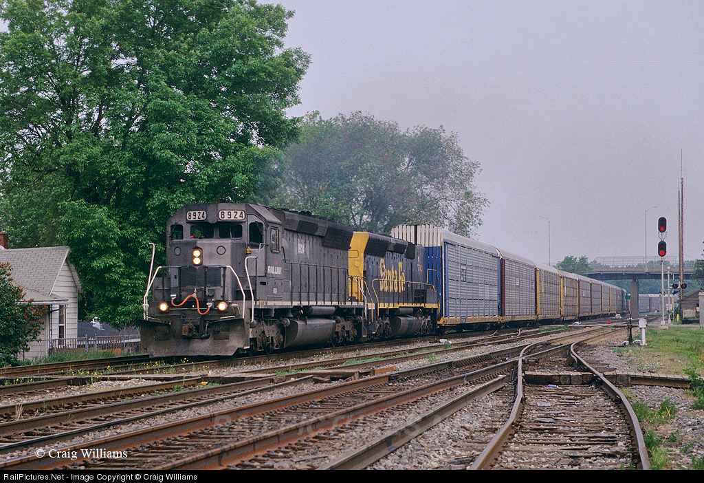 IMRL power began visiting the BNSF in 1997 due to the MRL staging power for the start up of the IMRL. The power then ran thru after that to balance out the coal trains the IMRL received from the BNSF in Ottumwa, IA. Here is a SD45 coupled to a rare SD45B powers a southbound auto rack train towards Chicago, probably #34.