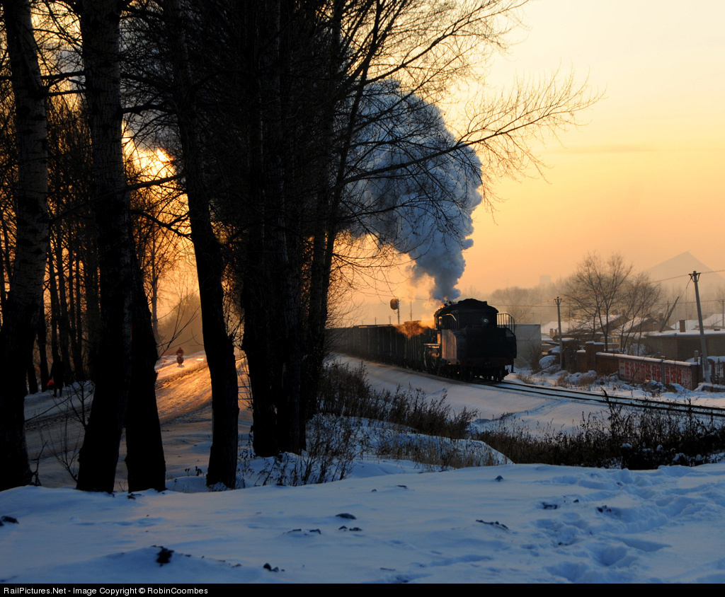 | An everyday day scene on the Chenzihe system with a SY Class moving a train of empties in late afternoon winter sun with a lone motor cyclist making his way home carefully along icy roads but for me to see real working steam in such conditions in 2009 was extra-ordinary |