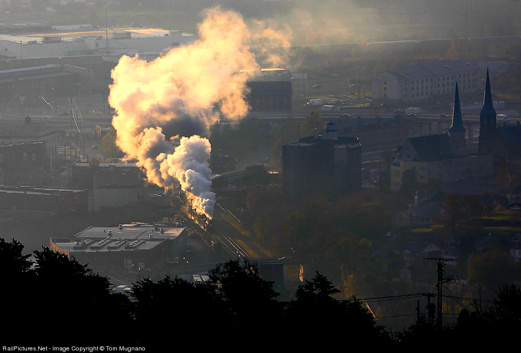 | Look again its Cumberland,Md .... not China... as Fog, haze & and an unususal early departure time of this WMSR train creates this "Mountain Maryland" image shortly after the sun rises over the Queen City |