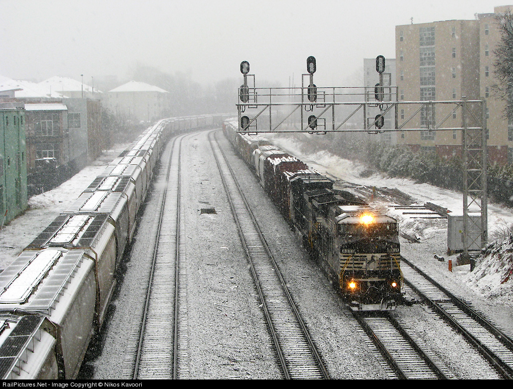 Atlanta Blizzard! As our long HOT summer hopefully winds to a close, I thought I would dig up some wintertime memories from last winter. The snowstorm is intensifying as this northbound heads under the signals at King Plow. The former Conrail veteran is no doubt accustomed to the conditions.