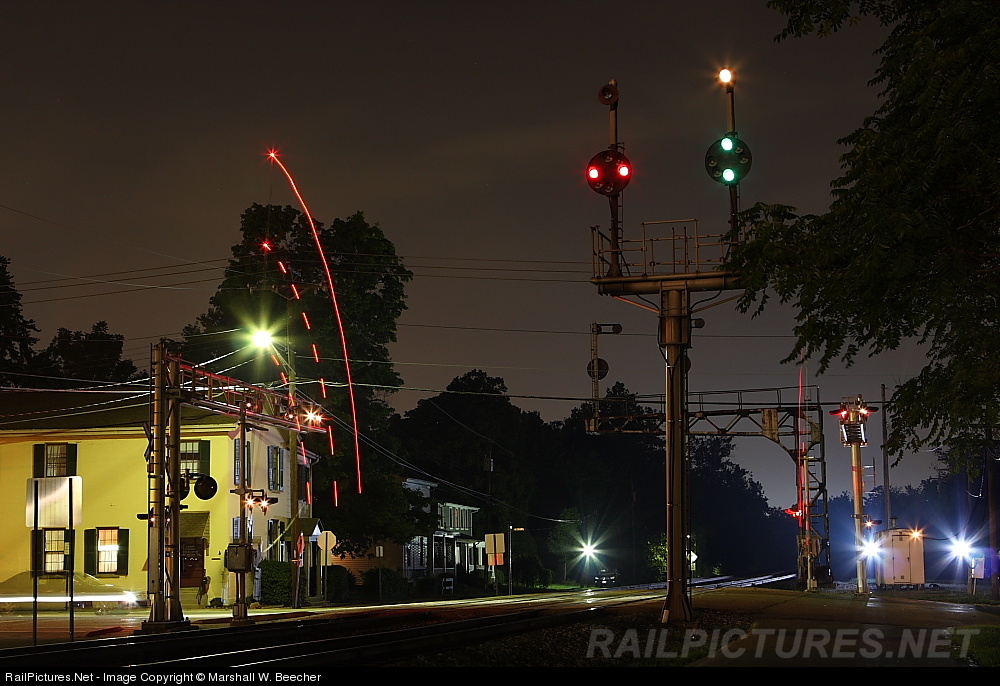 Classic B&O position signals are lit and the gates start to drop as another northbound NS run-thru move nears this small burg just north of Cincinnati, OH.