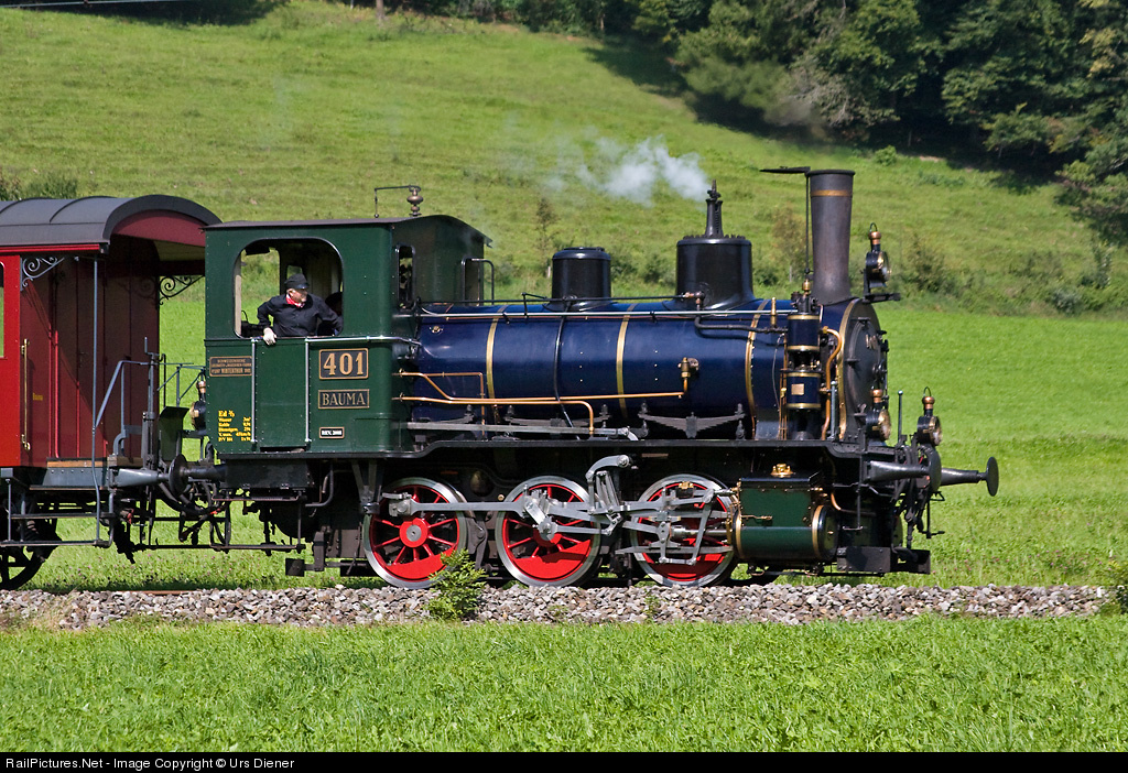 The Ed 3/3 401 was built 1901 for the NOB (North East Railway) and is since 1986 operational with the DVZO on the line Bauma - Bäretswil - Hinwil.