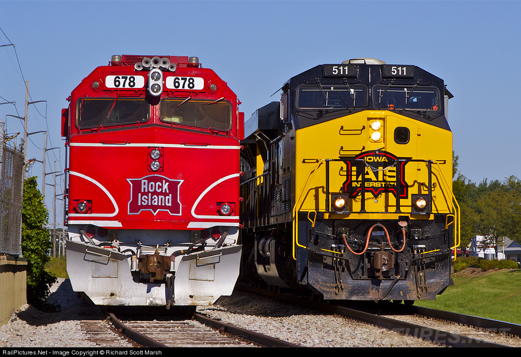 The CRIC with the 511 rolls past the 678 and Hawkeye Express On the way to Iowa City.